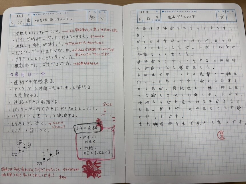 こんにちは。おおぞら高校の奥村です。 今回は屋久島スクーリングに参加してくれた横浜キャンパス渡辺さんのみらいノート®活用方法を紹介します。 渡辺さんは1年に1冊...続きを見る -